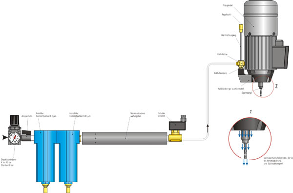 mit Kaltluft (bis maximal minus 40° C) betrieben. Diese Kaltluft kann